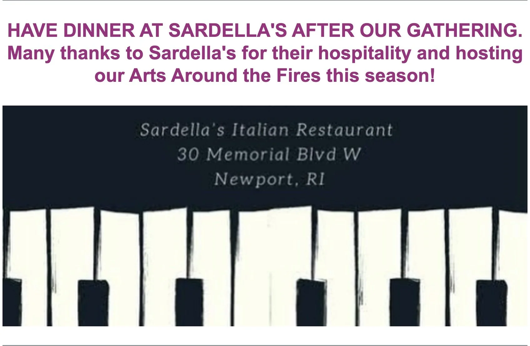 Arts Around the Fire is an opportunity for artists, writers, performers and audiences to engage with colleagues about events affecting the cultural community, and to learn about new ideas and artistic endeavors. Interested parties are invited to sign up for an artist membership or become a supporting member of the Alliance, a coalition of individuals and non-profits committed to the advancement of arts and culture in Newport County.
